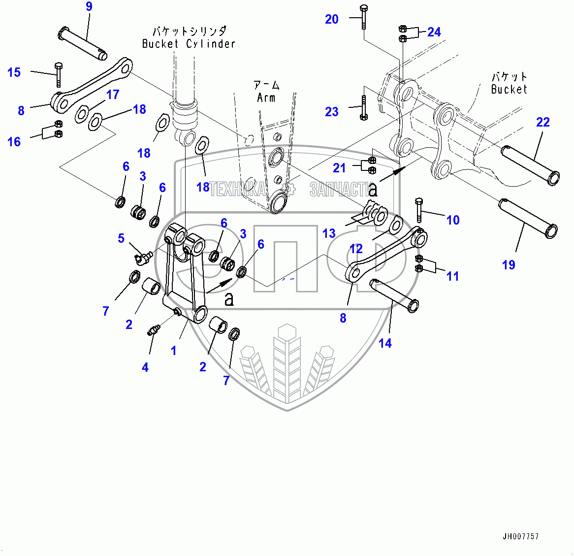 Каталог запасных частей к технике: Komatsu PC200LC-8M0. Arm, Bucket Link (400001-)
