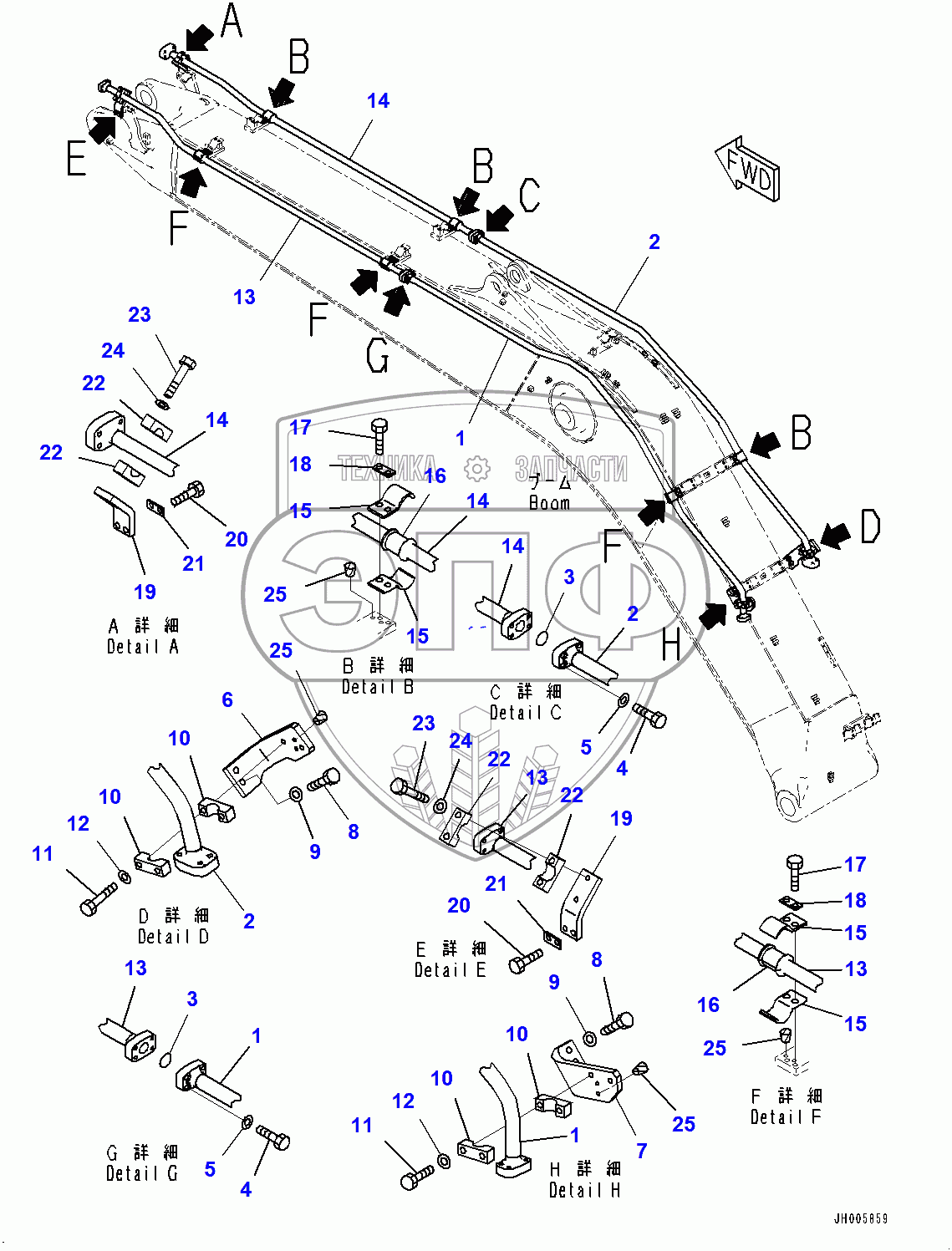 Каталог запасных частей к технике: Komatsu PC200LC-8M0. Boom, Additional Piping (400001-)