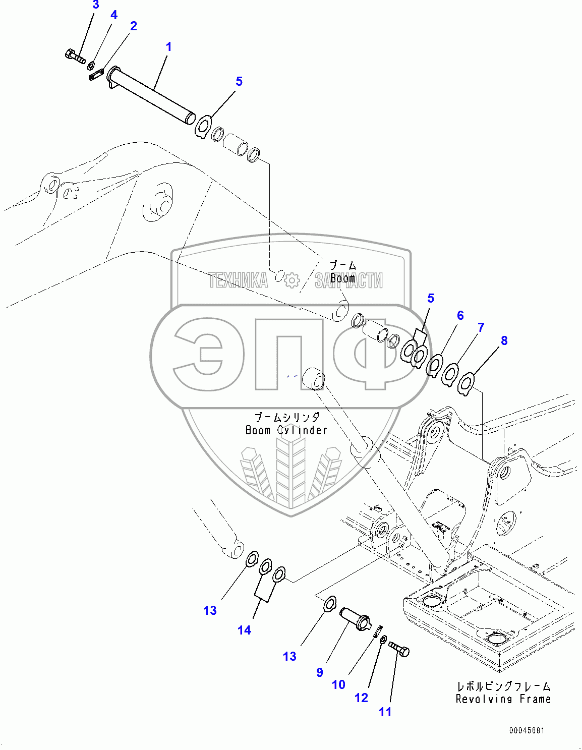 Каталог запасных частей к технике: Komatsu PC200LC-8M0. Boom Foot Pin (400001-)