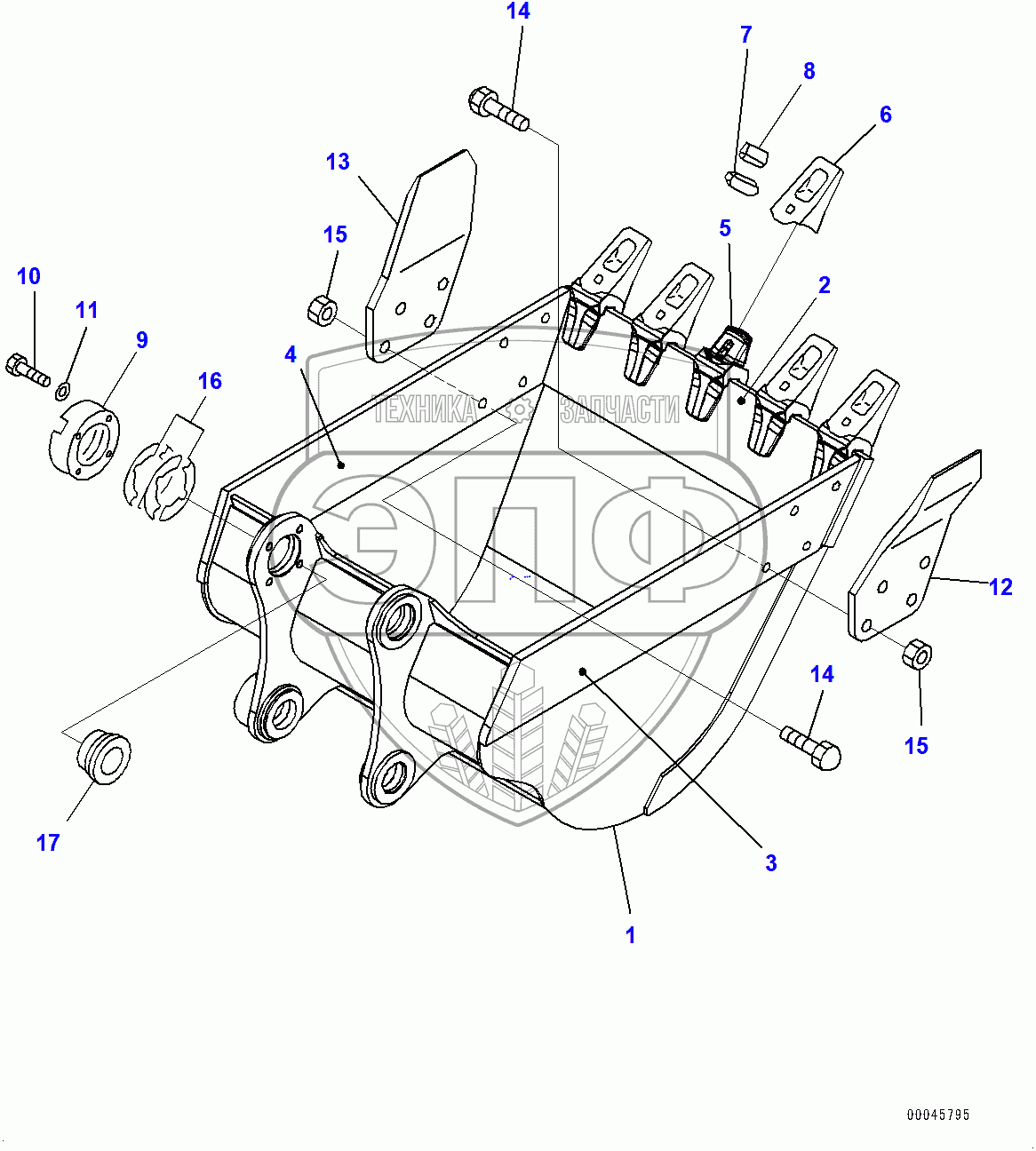 Каталог запасных частей к технике: Komatsu PC200LC-8M0. Bucket (400001-)