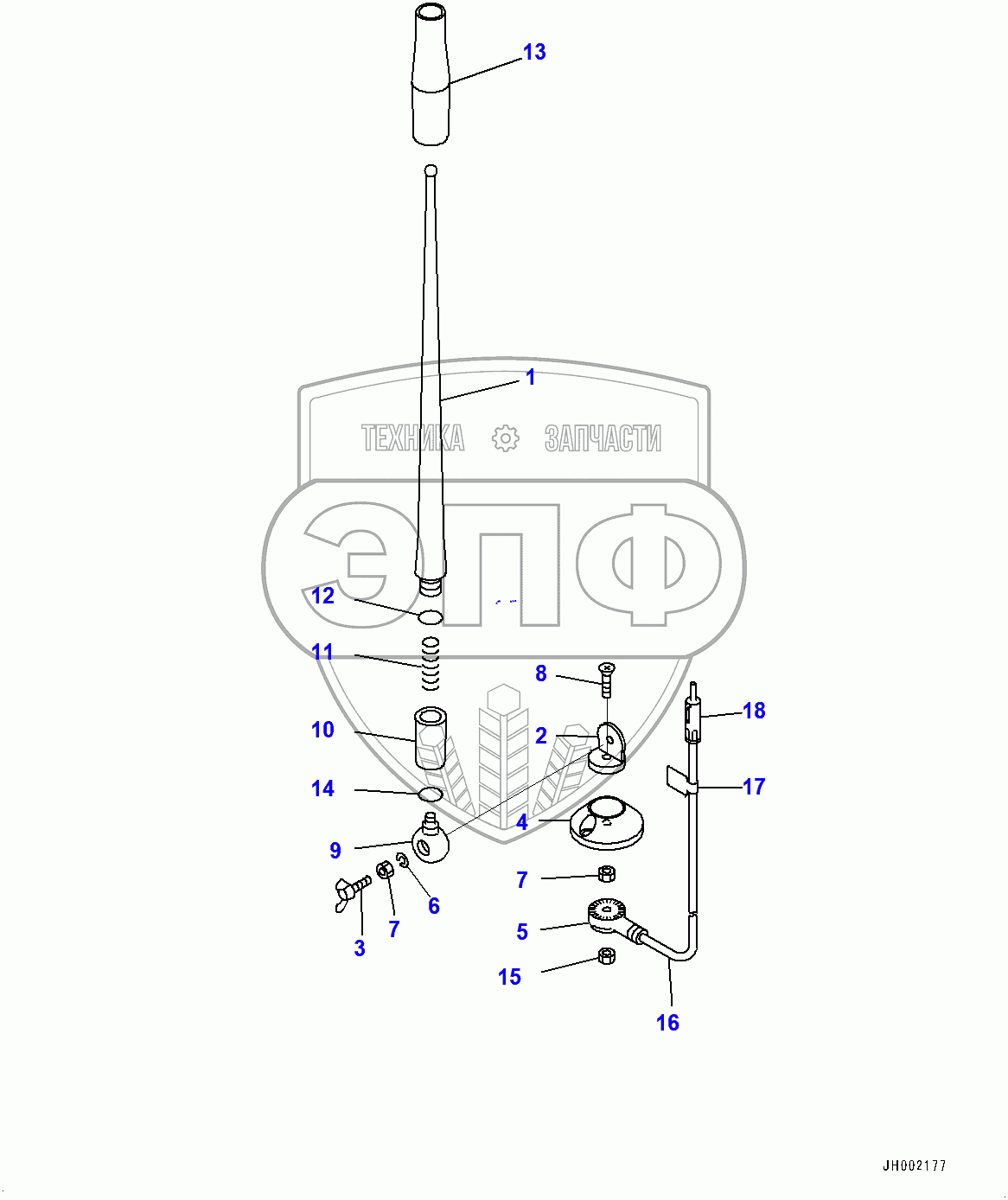 Каталог запасных частей к технике: Komatsu PC200LC-8M0. Cab, Rubber Antenna (400001-)