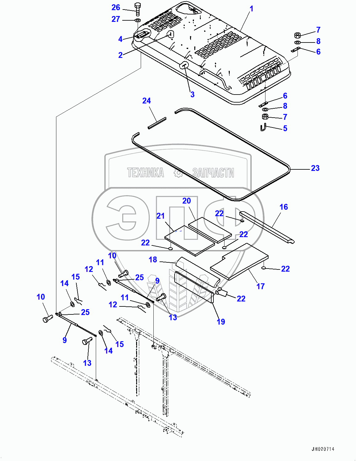 Каталог запасных частей к технике: Komatsu PC200LC-8M0. Engine Hood (400001-)