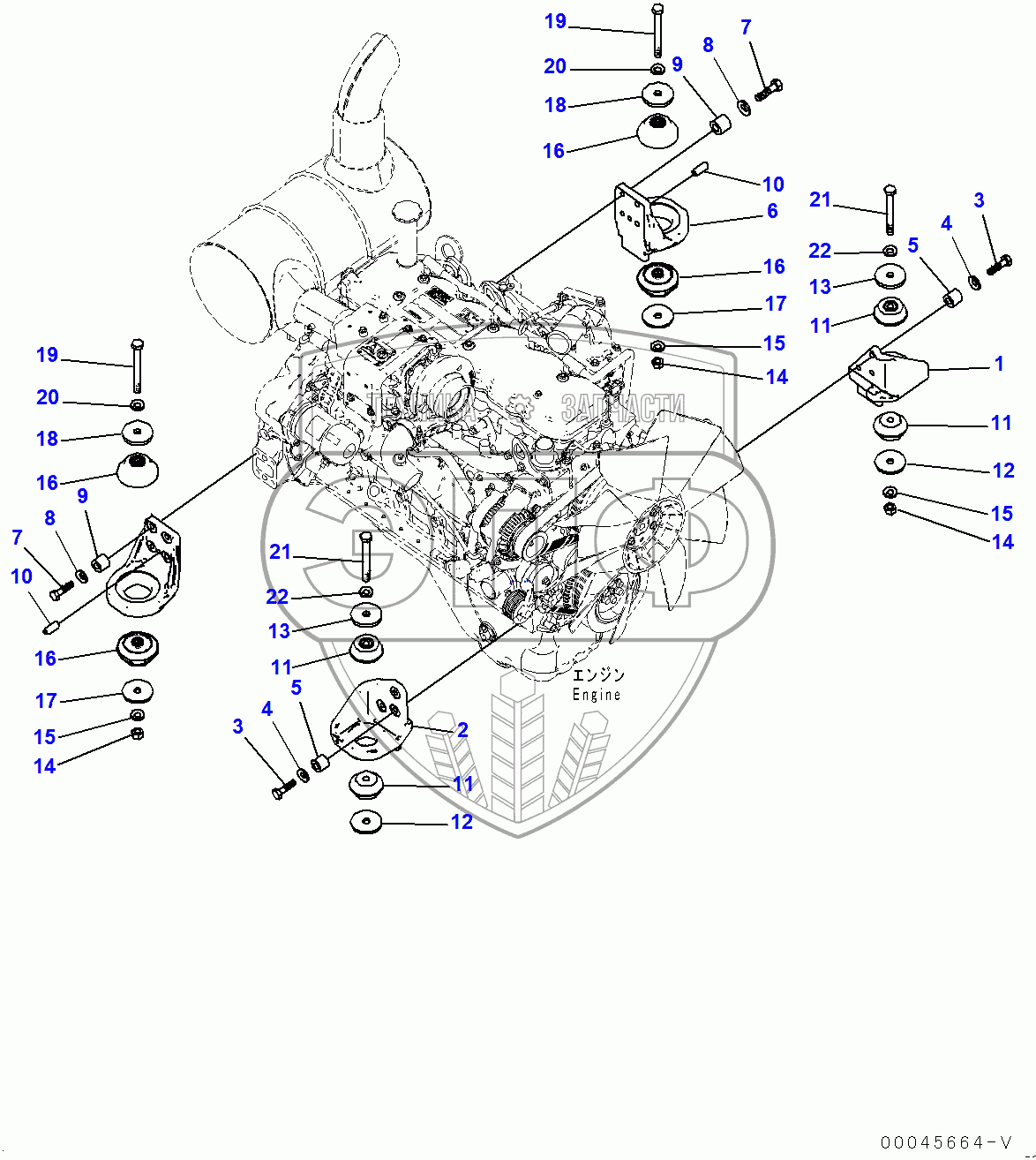 Каталог запасных частей к технике: Komatsu PC200LC-8M0. Engine Mounting (400001-)