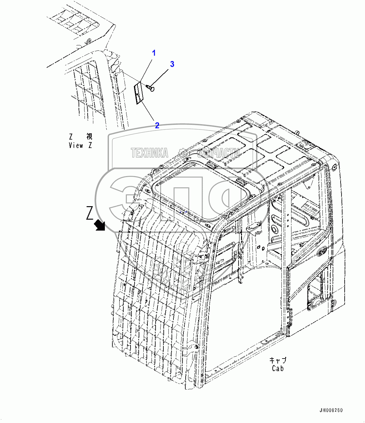 Каталог запасных частей к технике: Komatsu PC200LC-8M0. FOPS Plate (400001-)