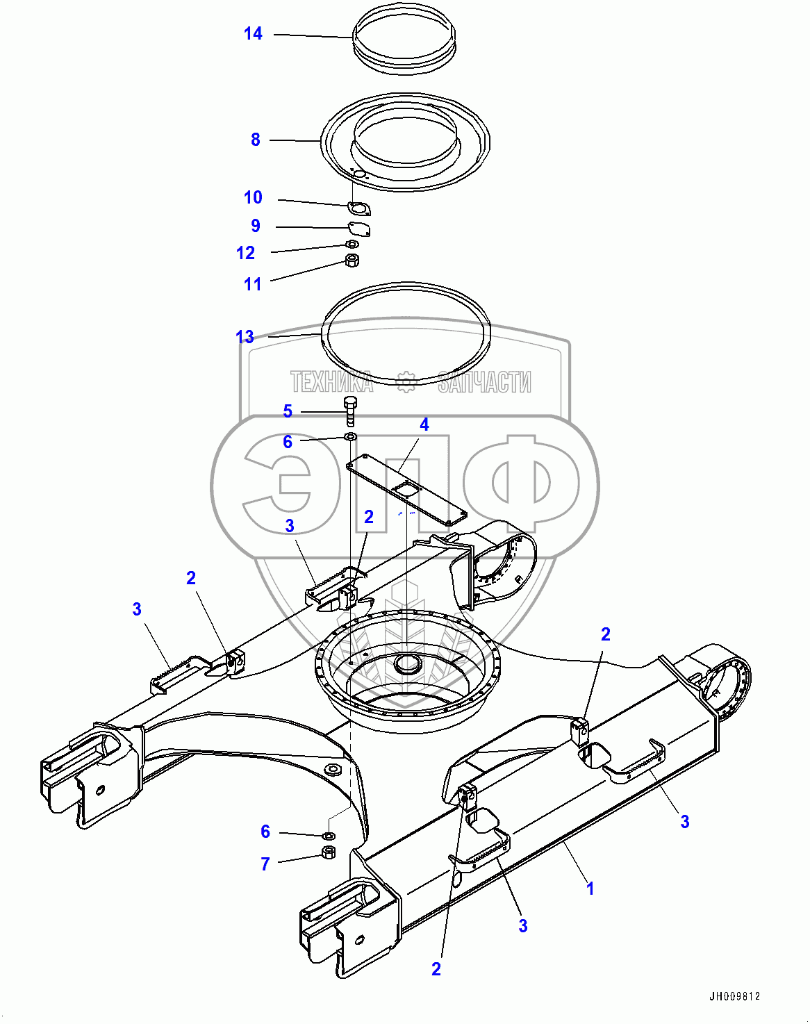 Каталог запасных частей к технике: Komatsu PC200LC-8M0. Track Frame (400001-)