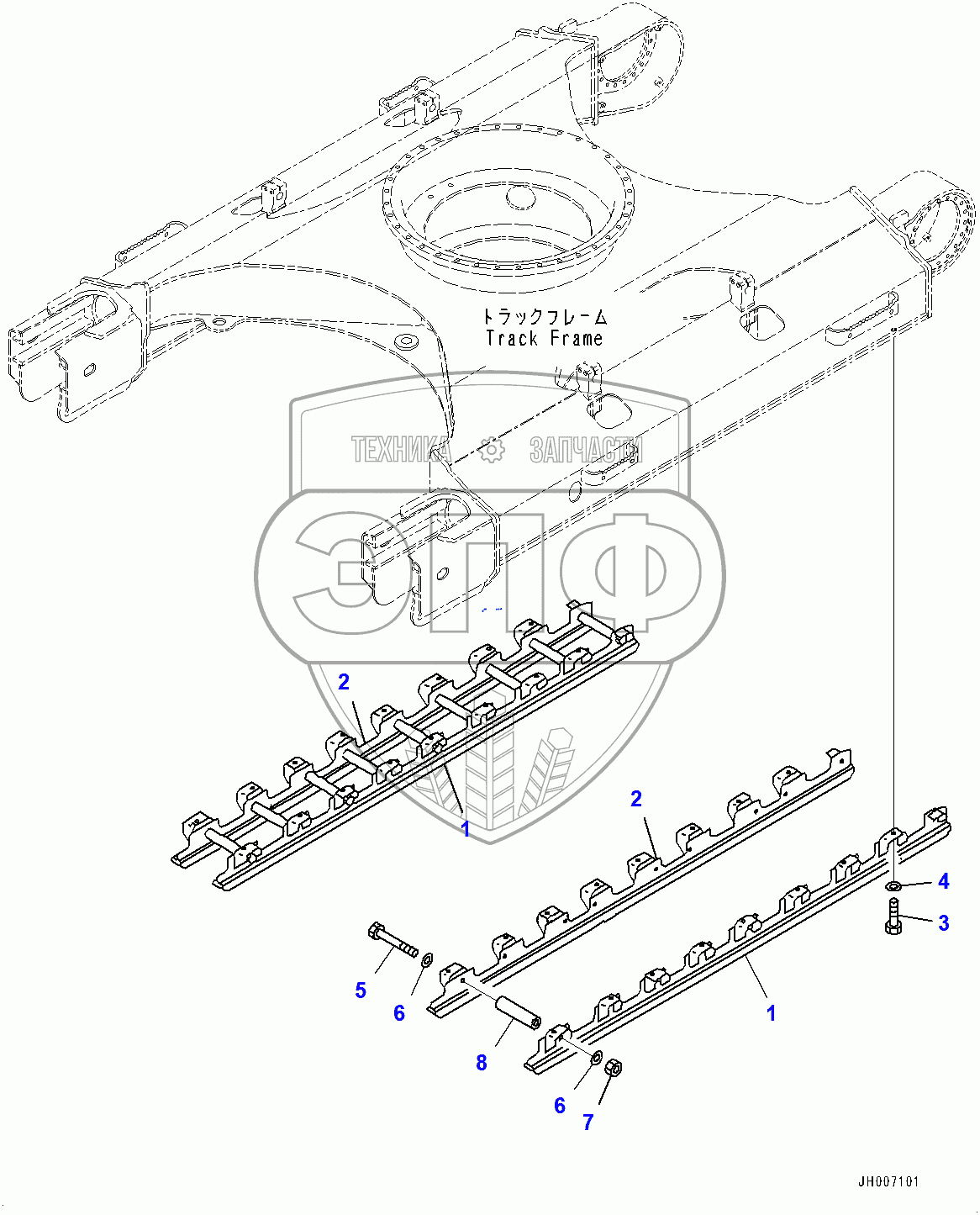 Каталог запасных частей к технике: Komatsu PC200LC-8M0. Track Roller Guard (400001-)