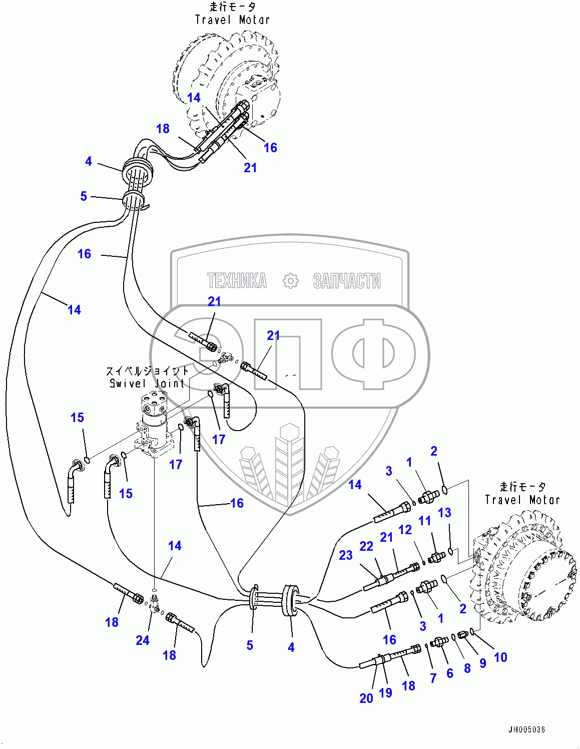 Каталог запасных частей к технике: Komatsu PC200LC-8M0. Travel Piping (400001-)