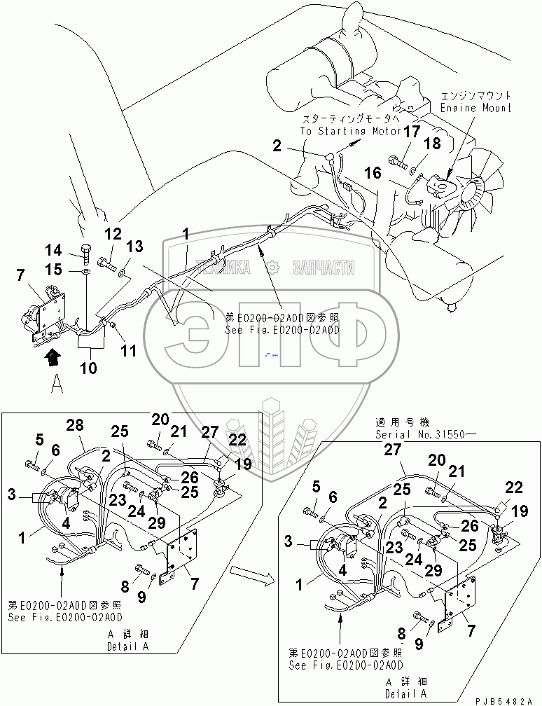 Каталог запасных частей к технике: Komatsu PC210-6. WIRING (STARTING HARNESS)(#30980-)
