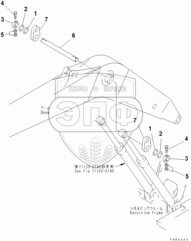 Каталог запасных частей к технике: Komatsu PC210LC-6. BOOM PIN (SLING)