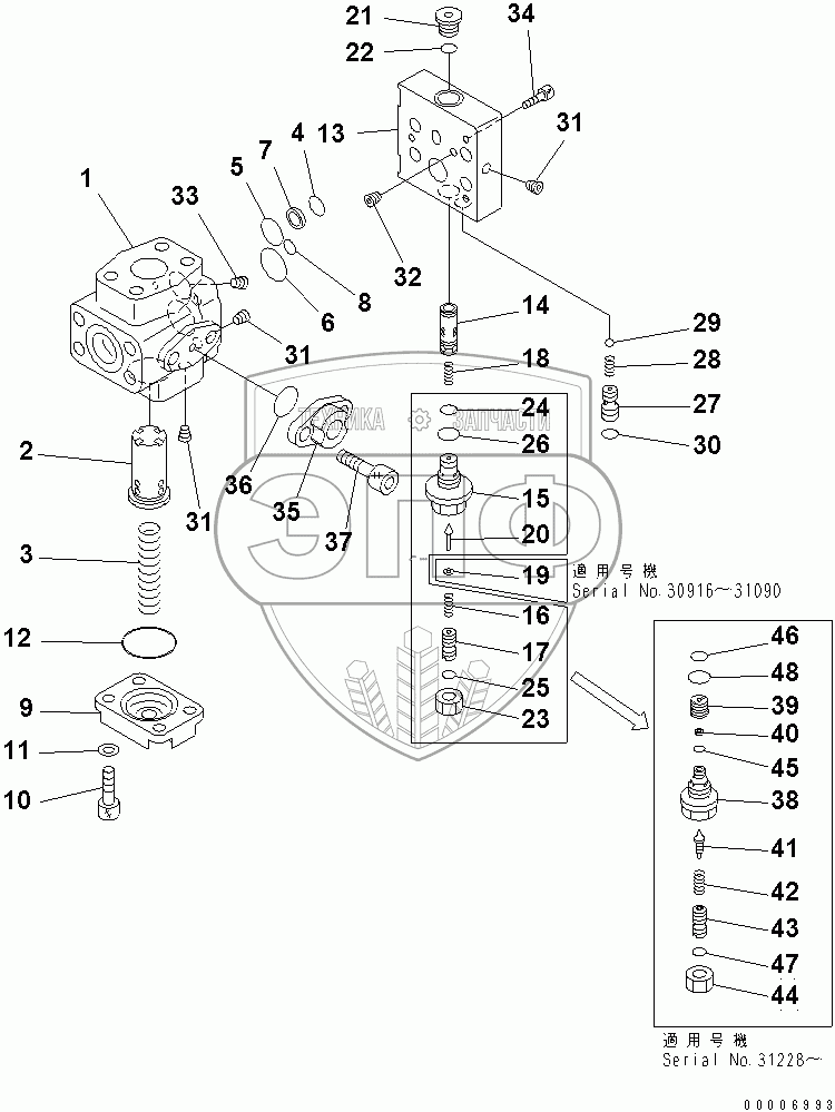 Каталог запасных частей к технике: Komatsu PC210LC-6. PILOT VALVE(#30916-)
