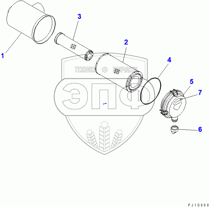 Каталог запасных частей к технике: Komatsu PC220-7. AIR CLEANER (INNER PART)