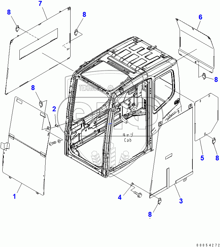 Каталог запасных частей к технике: Komatsu PC220-7. CAB COVER(#66185-)