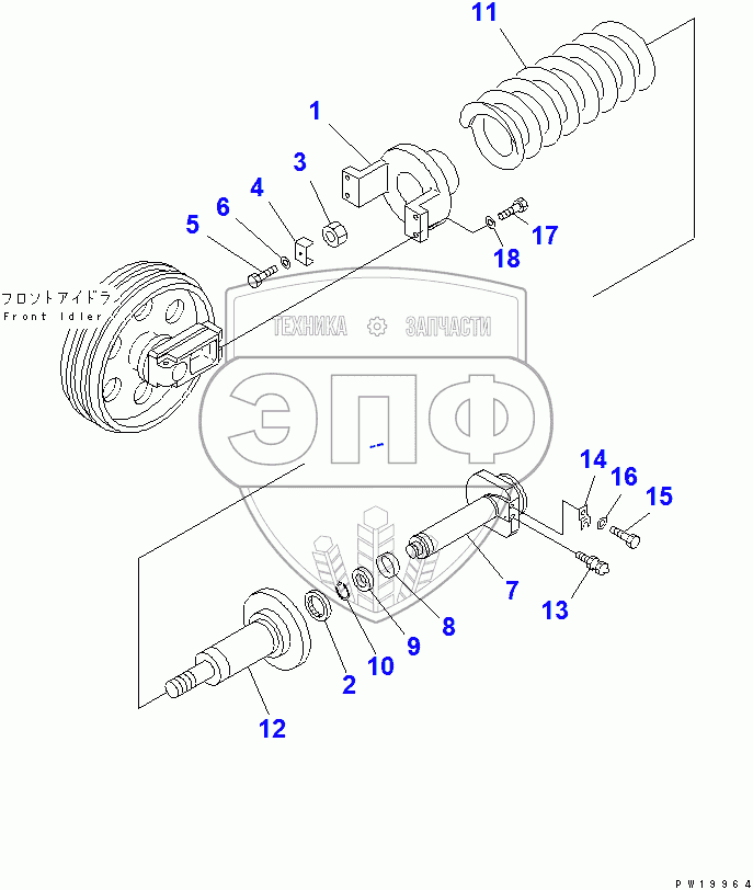 Каталог запасных частей к технике: Komatsu PC220-7. IDLER CUSHION(#60001-60356)