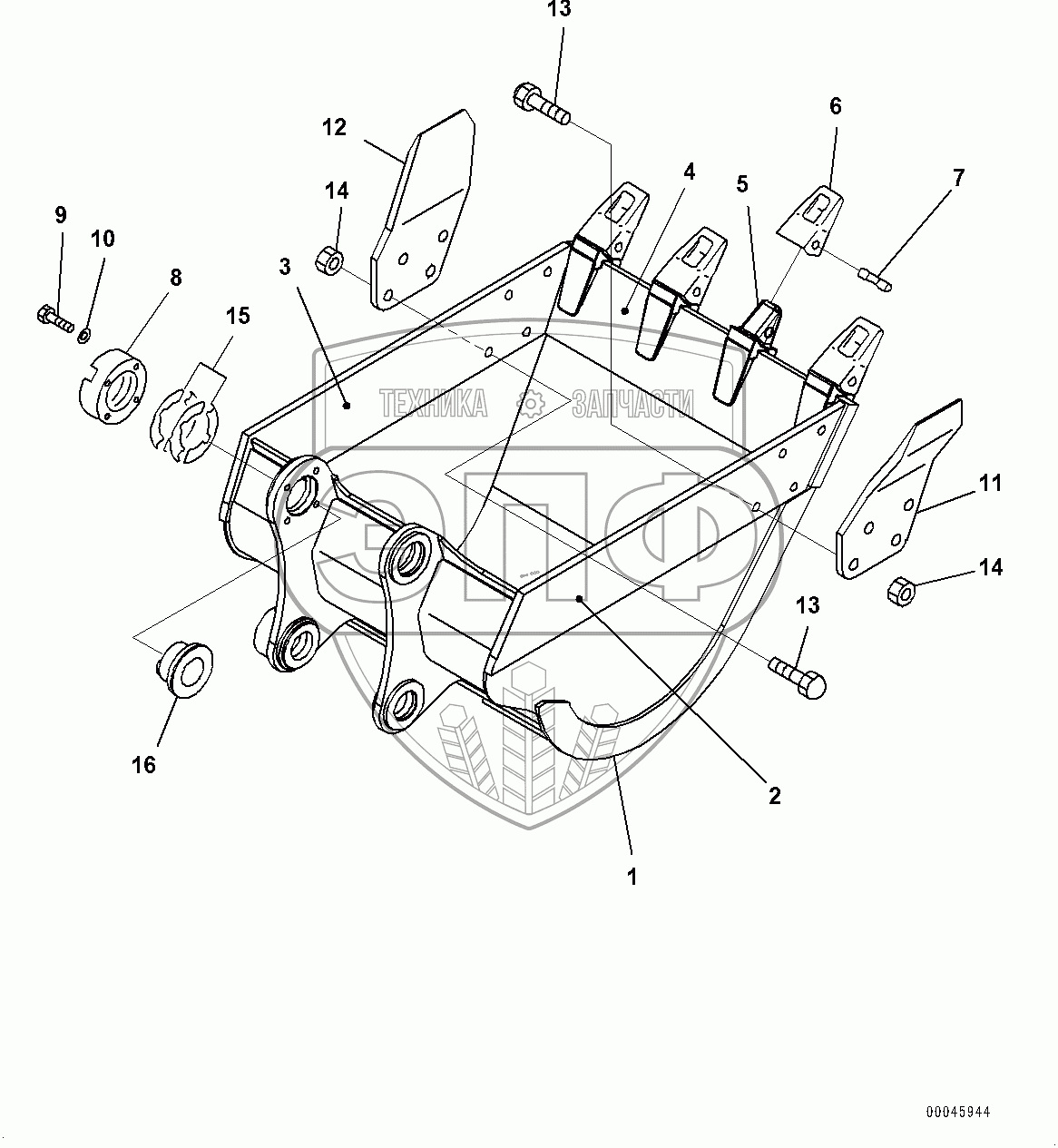 Каталог запасных частей к технике: Komatsu PC220LC-8MO. Bucket (#100001-)