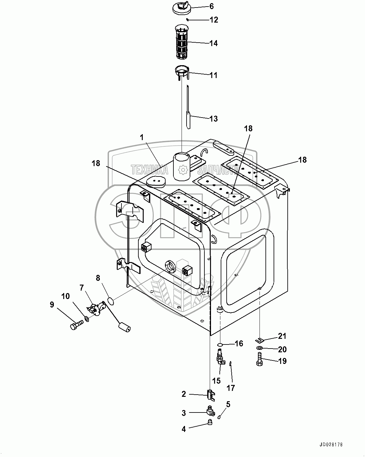 Каталог запасных частей к технике: Komatsu PC220LC-8MO. Fuel Tank (#100001-)