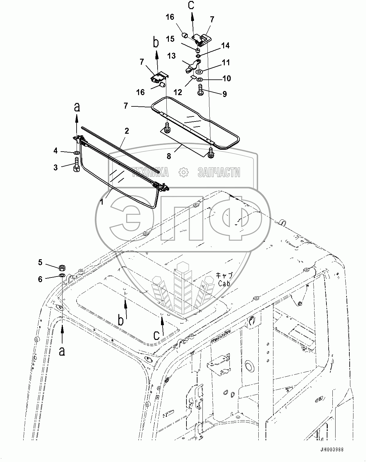 Каталог запасных частей к технике: Komatsu PC220LC-8MO. Sunvisor (#100001-)