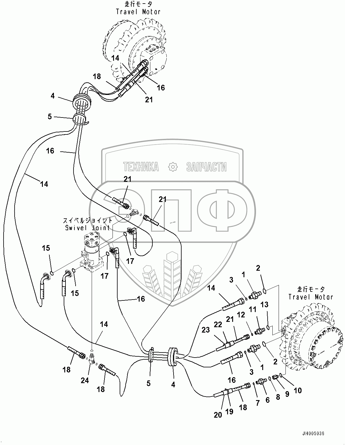 Каталог запасных частей к технике: Komatsu PC220LC-8MO. Travel Piping (#100001-)