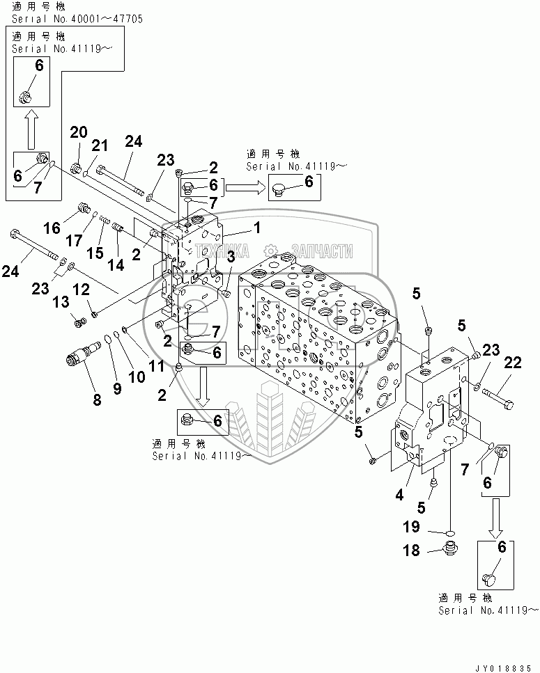 Каталог запасных частей к технике: Komatsu PC300-7. MAIN VALVE (7/20)