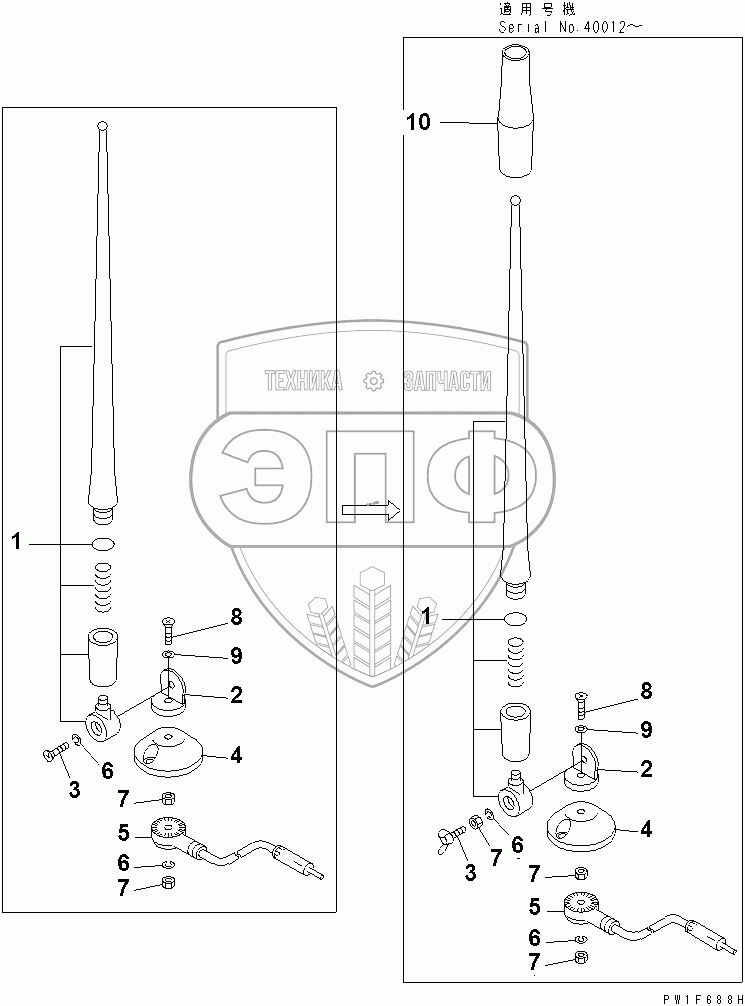 Каталог запасных частей к технике: Komatsu PC300-7. RUBBER ANTENNA(#40001-46931)