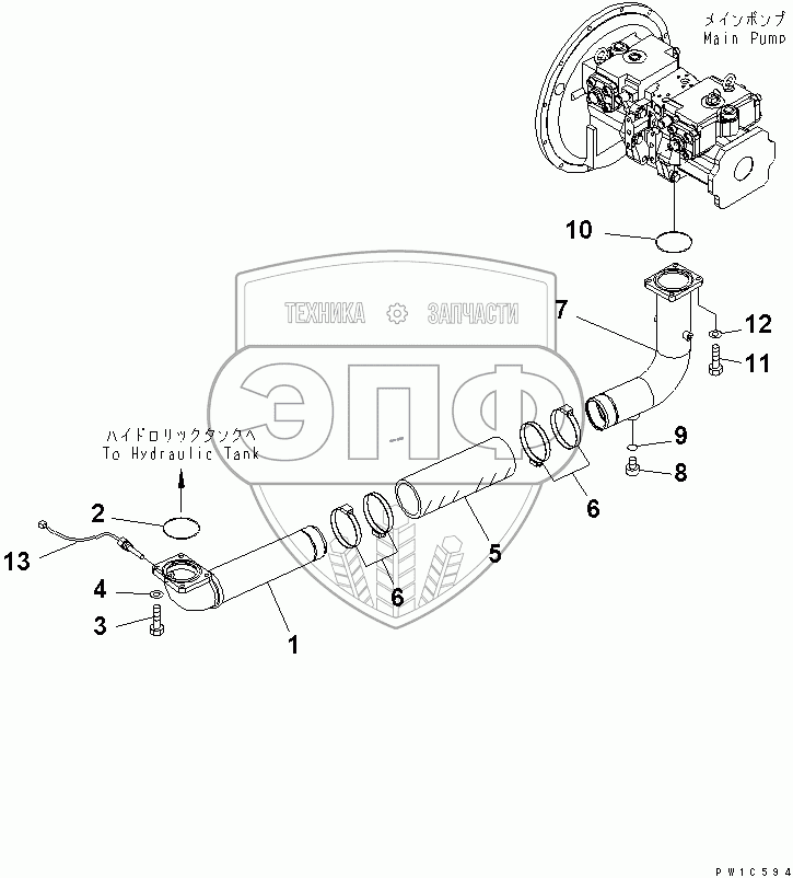 Каталог запасных частей к технике: Komatsu PC300-7. SUCTION PIPING