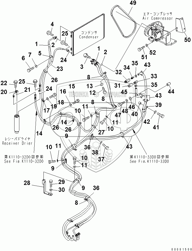 Каталог запасных частей к технике: Komatsu PC300LC-7. AIR CONDITIONER (HOSE)(#46156-)
