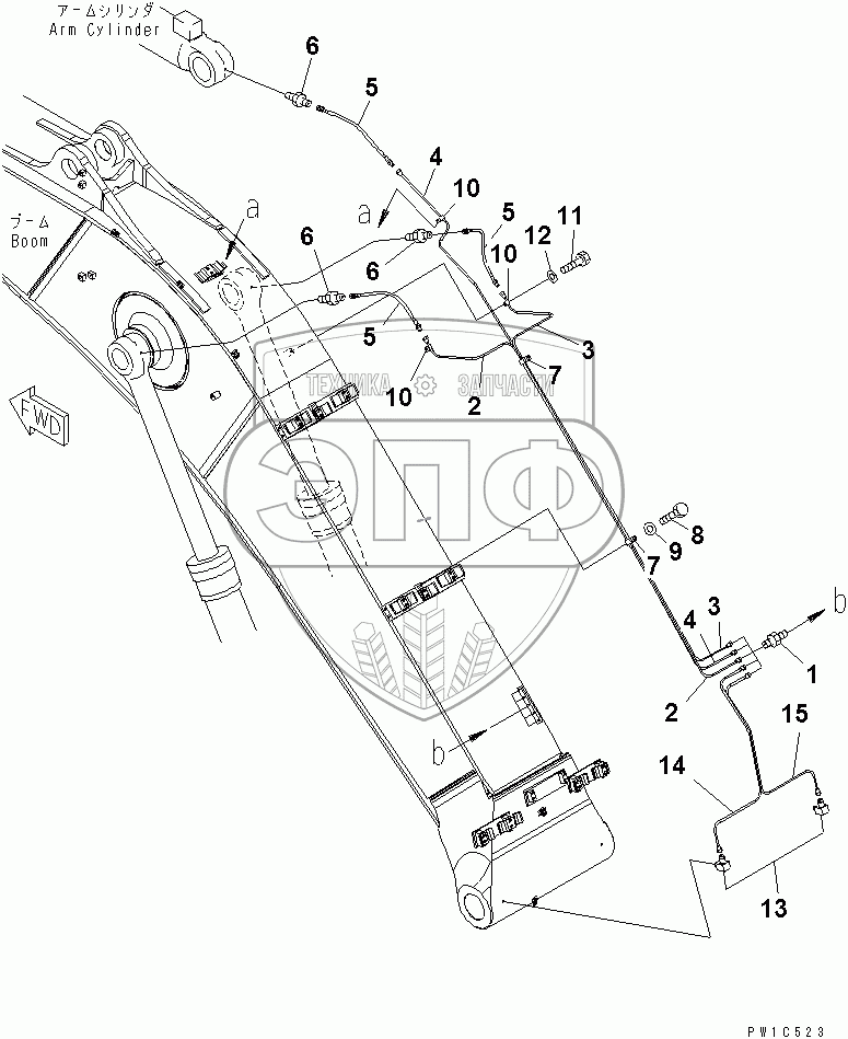 Каталог запасных частей к технике: Komatsu PC300LC-7. BOOM (LUBRICATION PIPING)