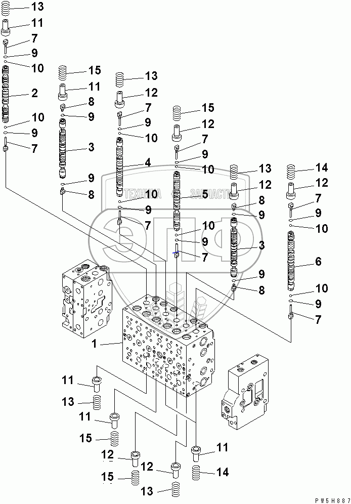 Каталог запасных частей к технике: Komatsu PC300LC-7. MAIN VALVE (1/20)