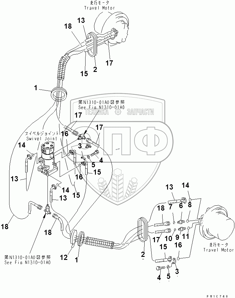 Каталог запасных частей к технике: Komatsu PC300LC-7. TRAVEL PIPING