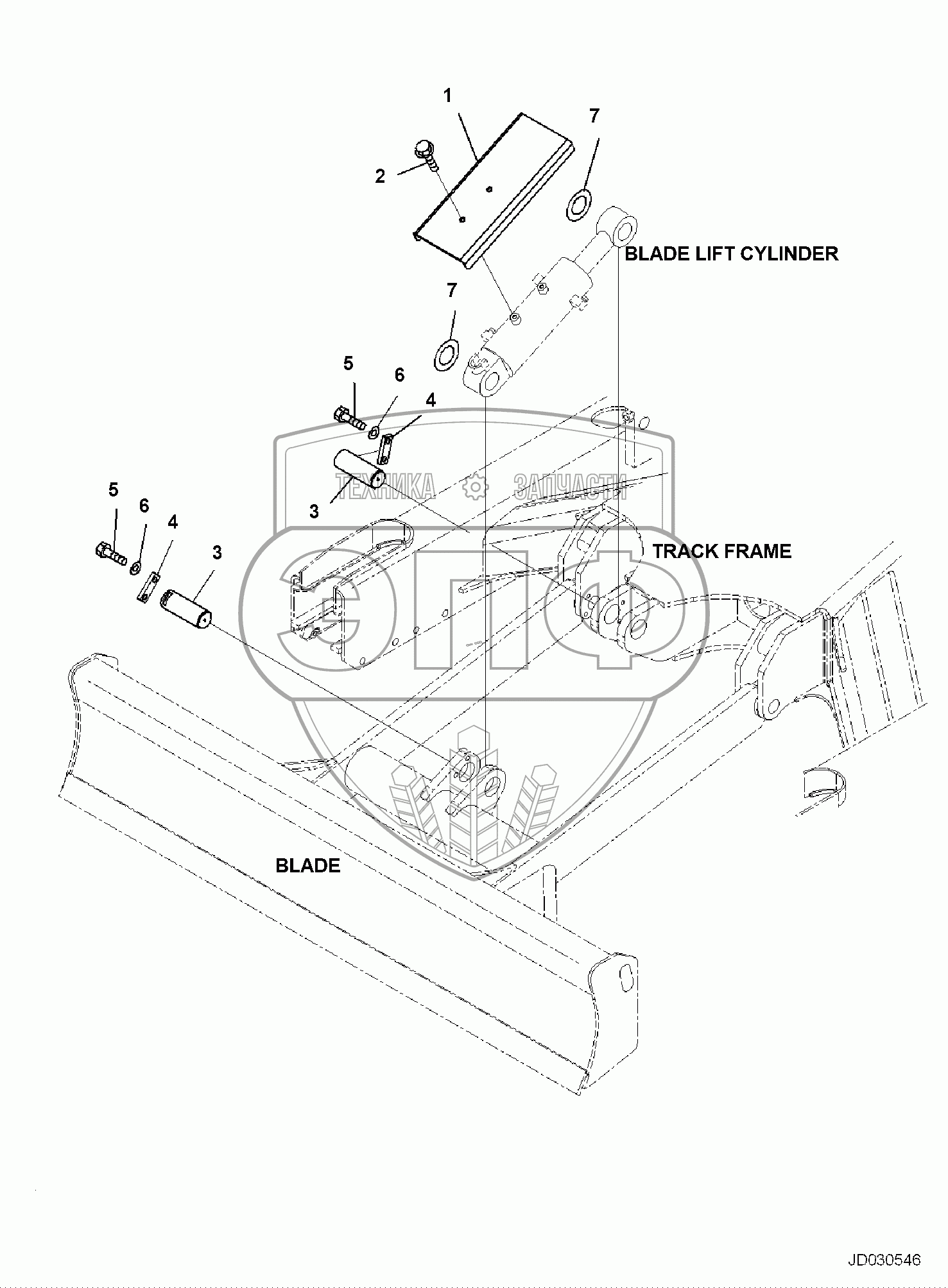 Каталог запасных частей к технике: Komatsu PC35MR-3. BLADE CYLINDER, COVER AND PIN