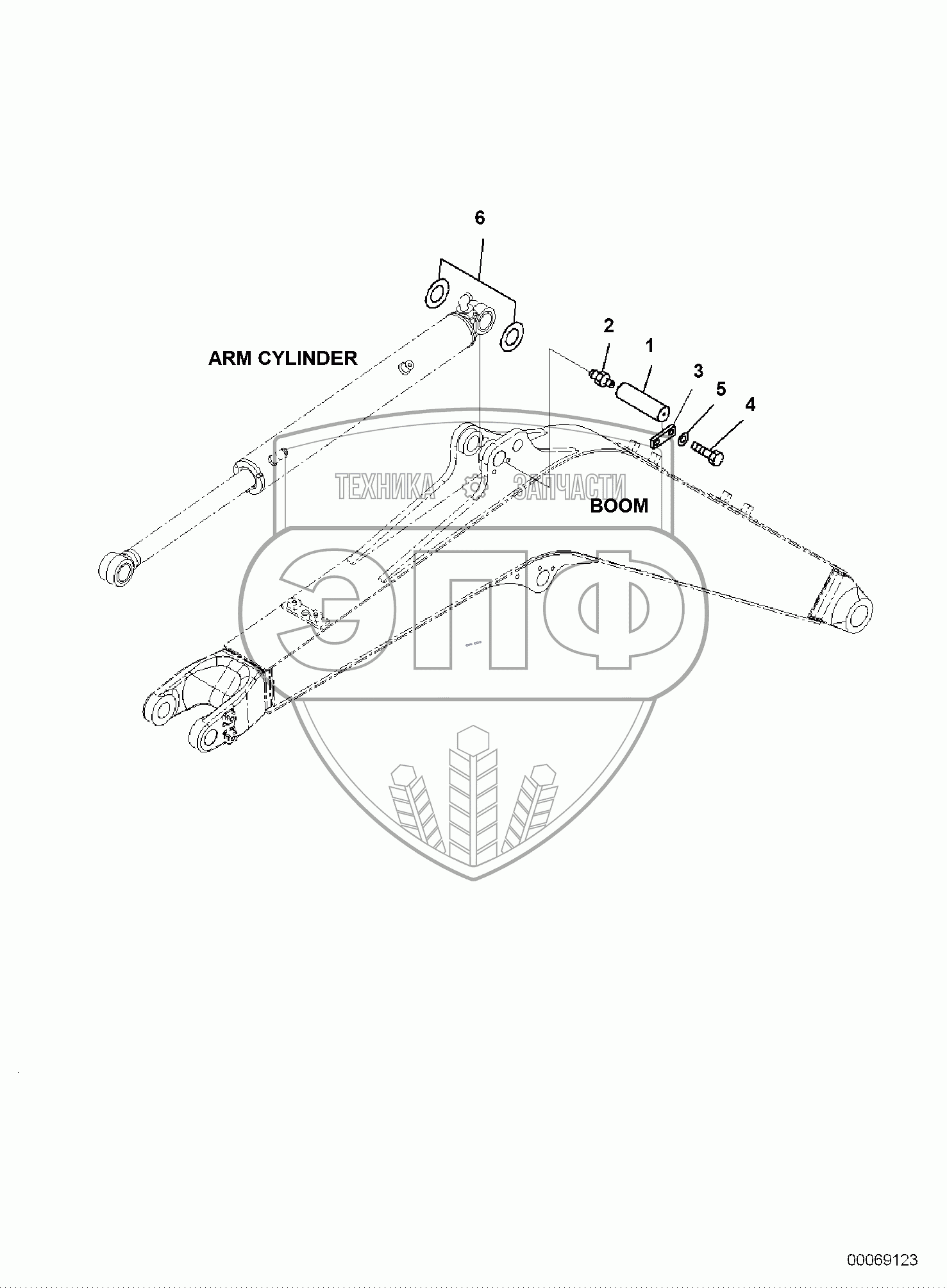 Каталог запасных частей к технике: Komatsu PC35MR-3. BOOM, PIN, ARM CYLINDER