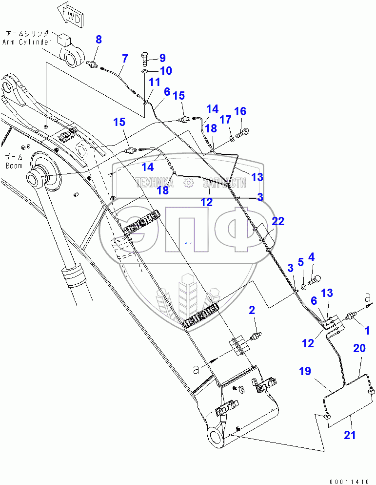 Каталог запасных частей к технике: Komatsu PC400-7. BOOM (LUBRICATION PIPING)