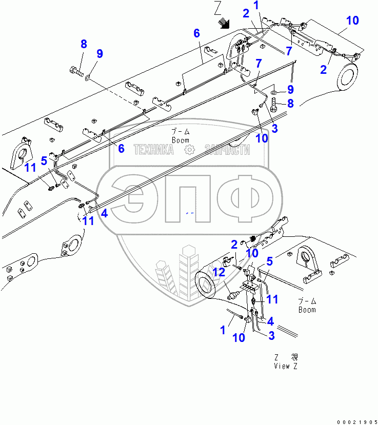 Каталог запасных частей к технике: Komatsu PC400-7. BOOM (LUBRICATION PIPING) (LOADER)