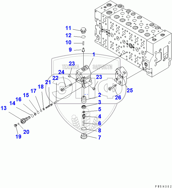 Каталог запасных частей к технике: Komatsu PC400-7. CONTROL VALVE (16/20)