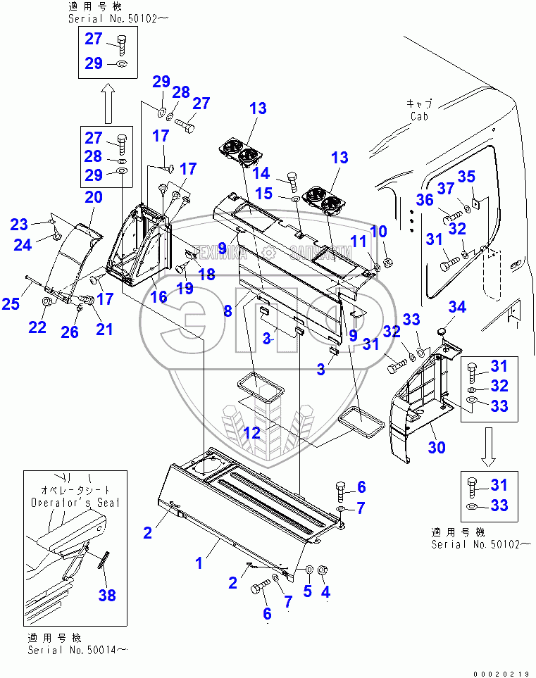 Каталог запасных частей к технике: Komatsu PC400-7. SEAT REAR COVER