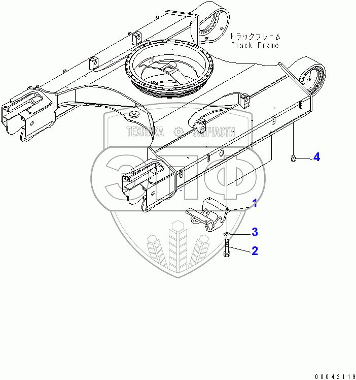 Каталог запасных частей к технике: Komatsu PC400-7. TRACK ROLLER GUARD(52102-)