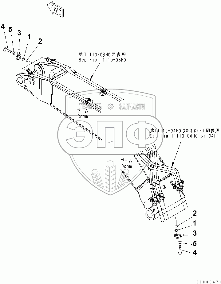 Каталог запасных частей к технике: Komatsu PC400-7EO. BOOM (BLIND PARTS)
