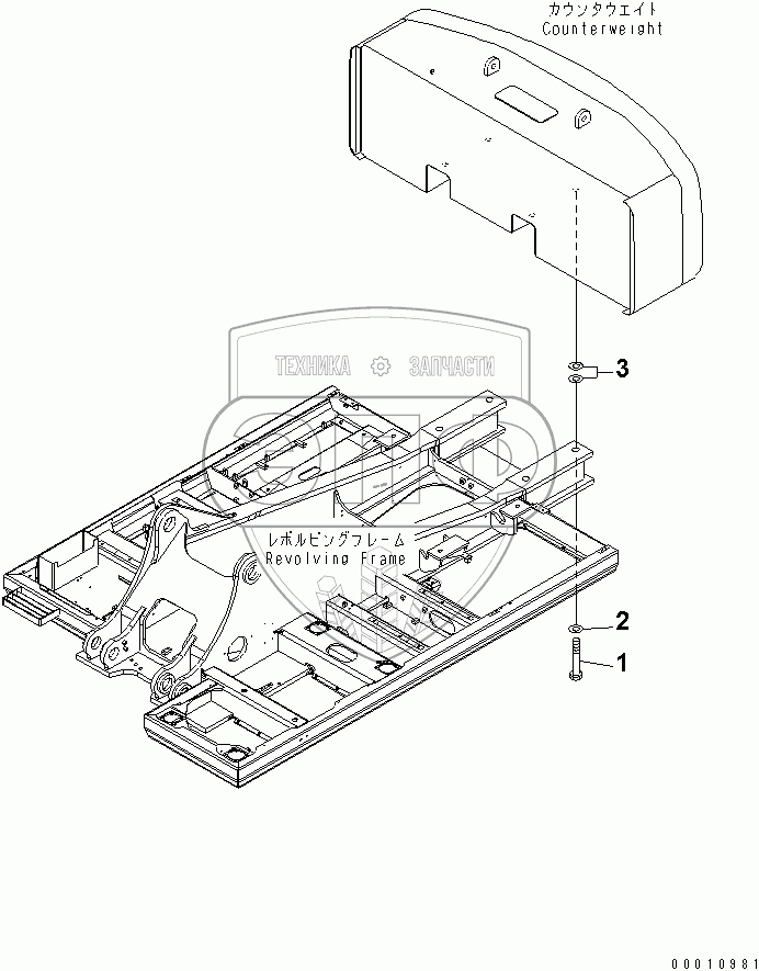 Каталог запасных частей к технике: Komatsu PC400-7EO. COUNTERWEIGHT MOUNTING