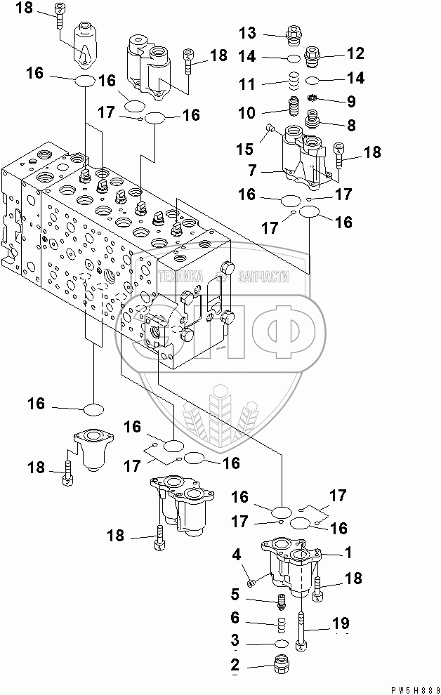 Каталог запасных частей к технике: Komatsu PC400-7EO. MAIN VALVE (3/20)