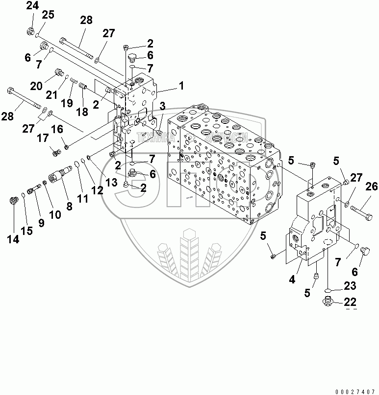 Каталог запасных частей к технике: Komatsu PC400-7EO. MAIN VALVE (7/20)