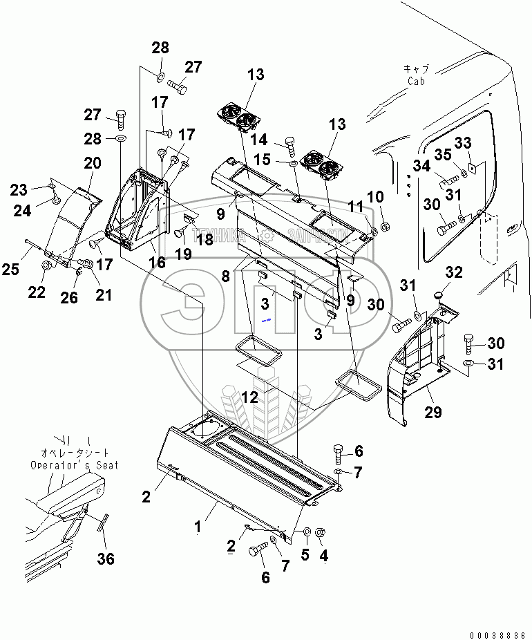 Каталог запасных частей к технике: Komatsu PC400-7EO. SEAT REAR COVER