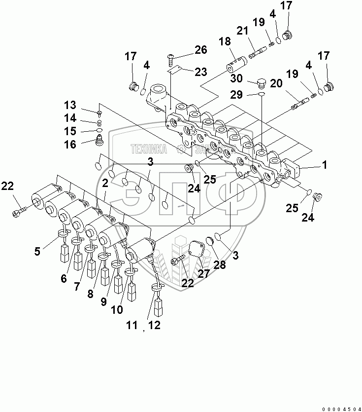 Каталог запасных частей к технике: Komatsu PC400-7EO. SOLENOID VALVE (INNER PARTS)