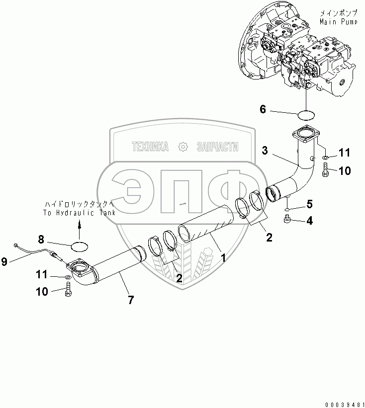 Каталог запасных частей к технике: Komatsu PC400-7EO. SUCTION LINE(#60001-65364)