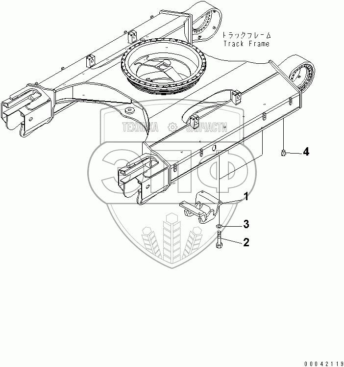 Каталог запасных частей к технике: Komatsu PC400-7EO. TRACK FRAME (CENTER GUARD)