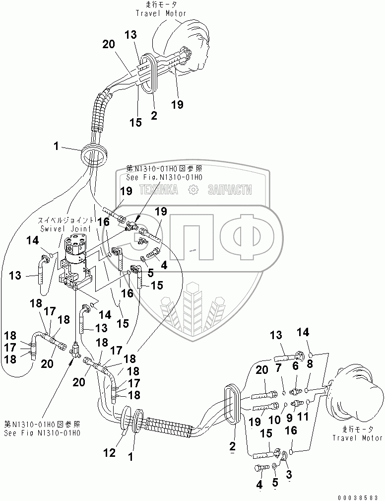 Каталог запасных частей к технике: Komatsu PC400-7EO. TRAVEL PIPING