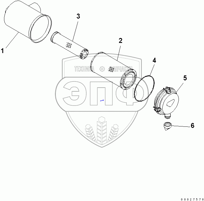 Каталог запасных частей к технике: Komatsu PC400LC-7. AIR CLEANER (INNER PART)