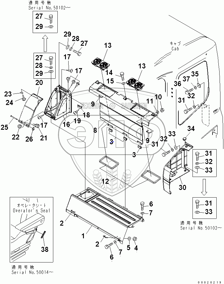 Каталог запасных частей к технике: Komatsu PC400LC-7. SEAT REAR COVER
