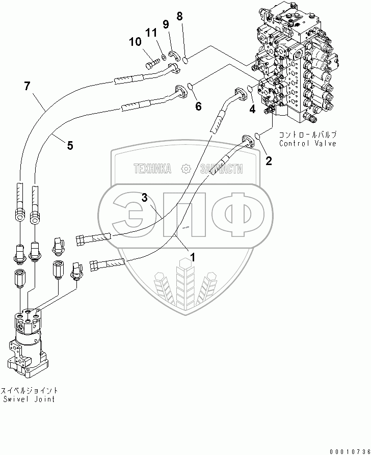Каталог запасных частей к технике: Komatsu PC400LC-7. TRAVEL PIPING