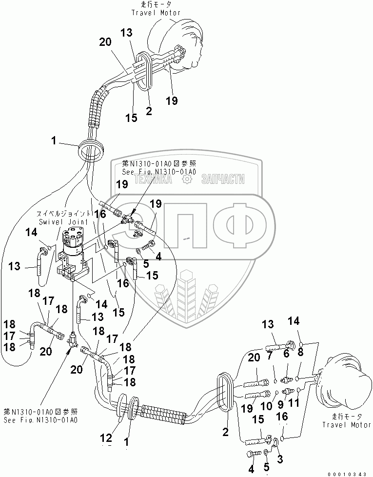 Каталог запасных частей к технике: Komatsu PC400LC-7. TRAVEL PIPING