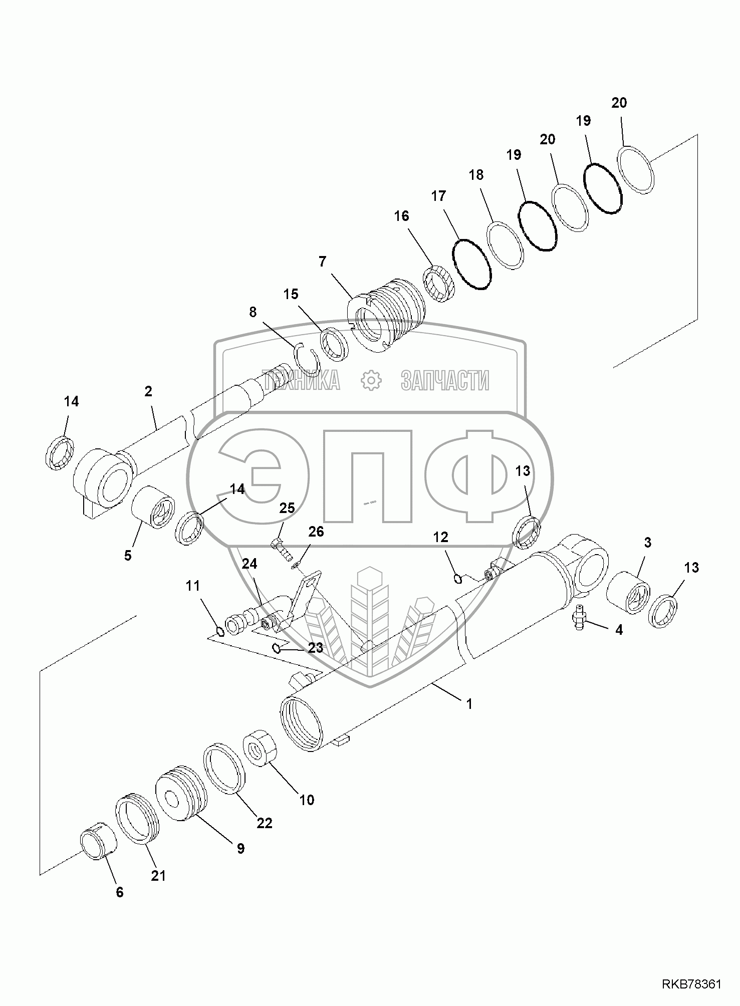 Каталог запасных частей к технике: Komatsu PC55MR-3. BOOM CYLINDER, (1/2)