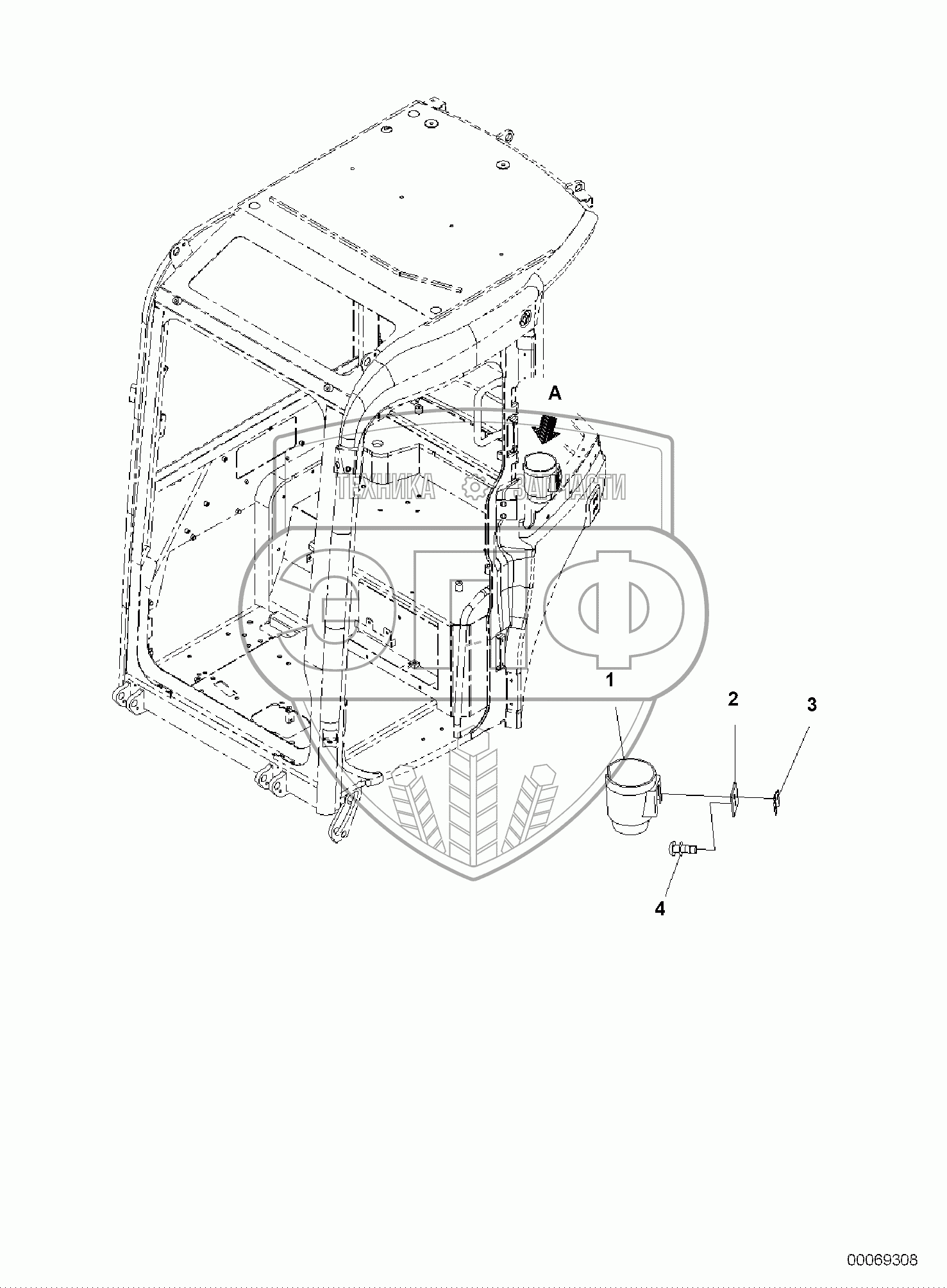 Каталог запасных частей к технике: Komatsu PC55MR-3. CAB, 1-ATTACHMENT, CUP HOLDER